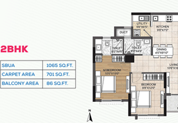 1065 - 1190 Sq.ft ₹ 65.9 Lacs (All Inclusive)*